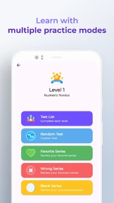يتفرد **تحدي سلسلة الأرقام** بمجموعة شاملة من أنماط التدريب المصممة خصيصًا لتلبية احتياجاتك. سواء اخترت "الوضع العشوائي" لتحديات غير منتهية أو "وضع المستوى" للتقدم المتدرج في الصعوبة، فإنك دائمًا في قلب التجربة. كما يوفر التطبيق مرونة لا مثيل لها عبر تتبع سلاسلك المفضلة، أو تلك التي لم تتمكن من حلها، أو حتى التي أخطأت فيها سابقًا، مما يتيح لك تركيز جهودك بدقة على نقاط التحسين وتعزيز فهمك. كل ذلك يتم من خلال تمارين اختيار من متعدد بأربعة خيارات، مما يحاكي بدقة الاختبارات النفسية القياسية.