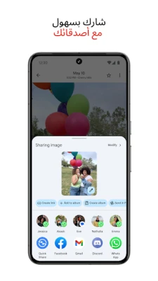 استمتع بتجربة تحرير صور احترافية بلمسة زر بفضل أدوات الذكاء الاصطناعي المدمجة في "صور Google". تتيح لك "الممحاة السحرية" إزالة العناصر غير المرغوب فيها بسلاسة، بينما تعمل ميزة "إزالة التمويه" على تحسين الصور الباهتة وغير الواضحة، وتُمكنك "أداة تعديل الإضاءة" من تحسين مستويات الإضاءة والسطوع ببراعة. ولن تضيع في البحث عن صورك مجددًا، حيث يمكنك العثور على أي لحظة باستخدام وصف طبيعي ومباشر، كأن تقول "أنا وناريمان نضحك" أو "ليلى ترسم في الحديقة". ومع "صور Google"، يصبح استرجاع ومشاركة ذكرياتك المفضلة مع أي شخص في قائمة جهات اتصالك أمرًا يسيرًا، حتى لو لم يكونوا يستخدمون التطبيق.