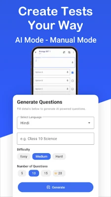 يُقدم Test Maker app & Quiz Creator app حلاً متكاملاً لإنشاء مجموعات أسئلة يومية ومسابقات واستبيانات بفعالية. إنه تطبيق أساسي للطلاب والمعلمين لتصميم اختباراتهم، ويمكن لأي مستخدم الاستفادة منه في مراجعة الامتحانات وتحقيق أهداف تعليمية متنوعة.